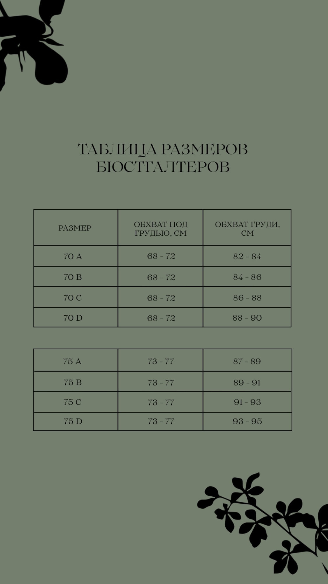 Таблица размеров